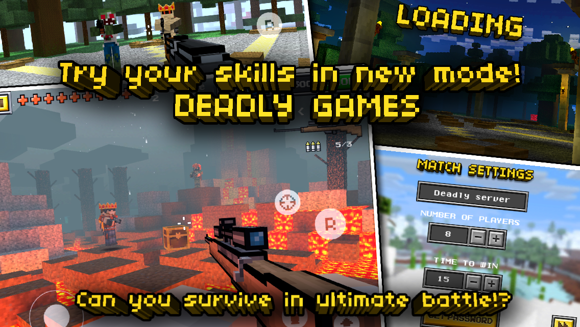 Ahora tienes una oportunidad perfecta para la batalla con sus amigos, compañeros de clase y compañeros de trabajo o cualquier otra persona en todo el mundo! Puede crear y personalizar a tu personaje usando una máquina de pieles especiales y luego mostrar en elcampo de batalla!